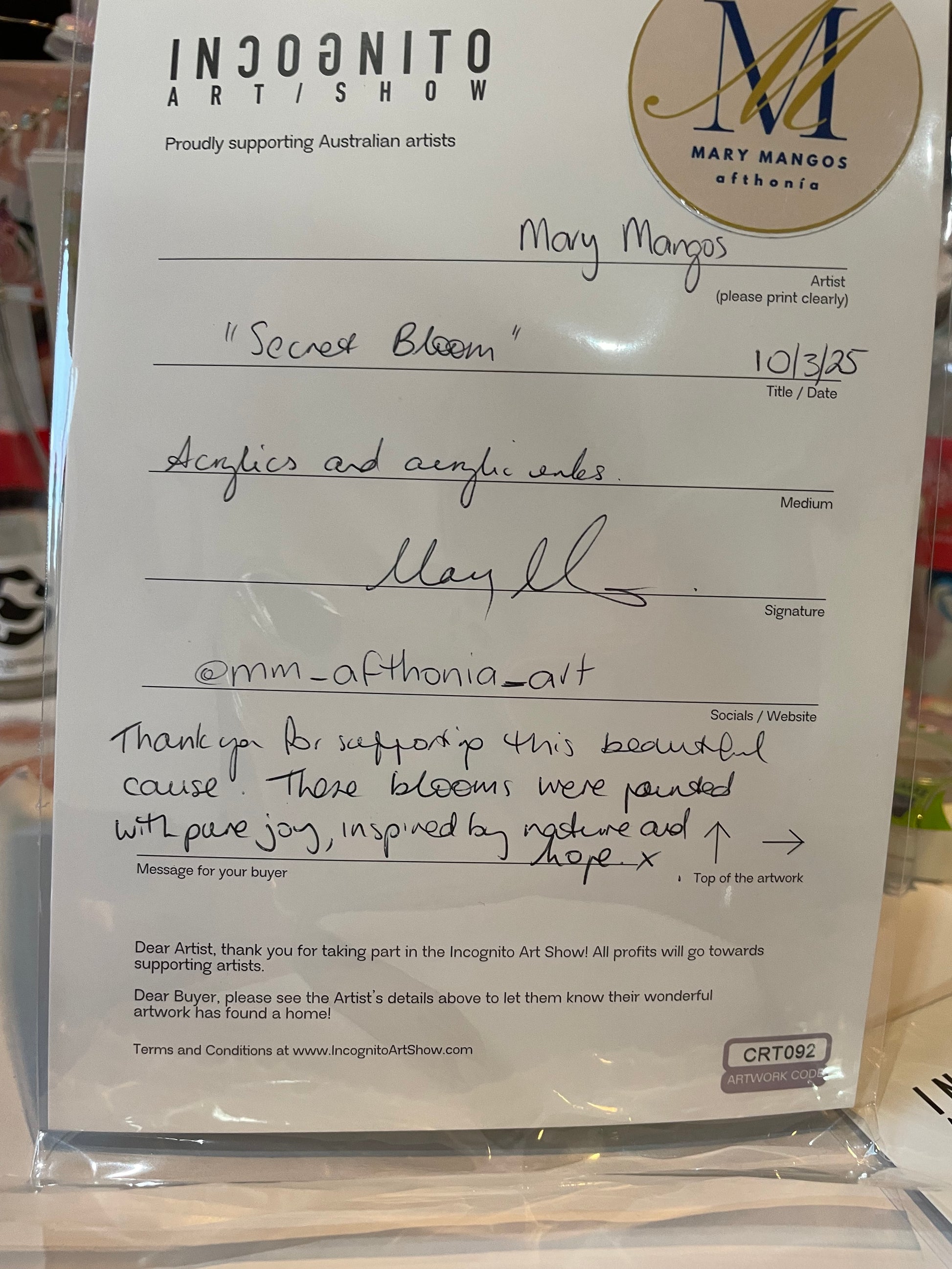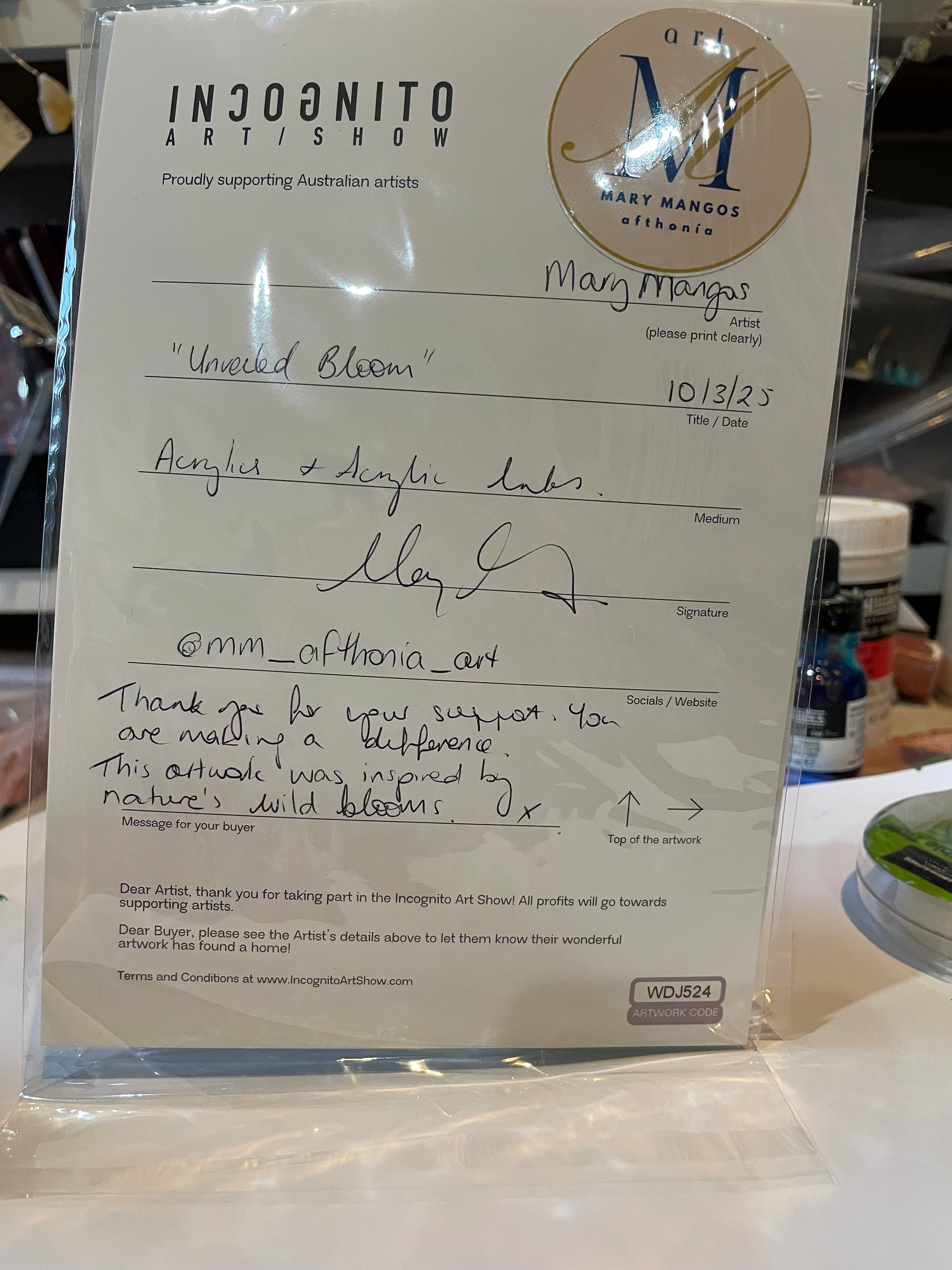 These two mini artworks were created and sold at the @incognitoartshow – Australia’s biggest and most inclusive art show.