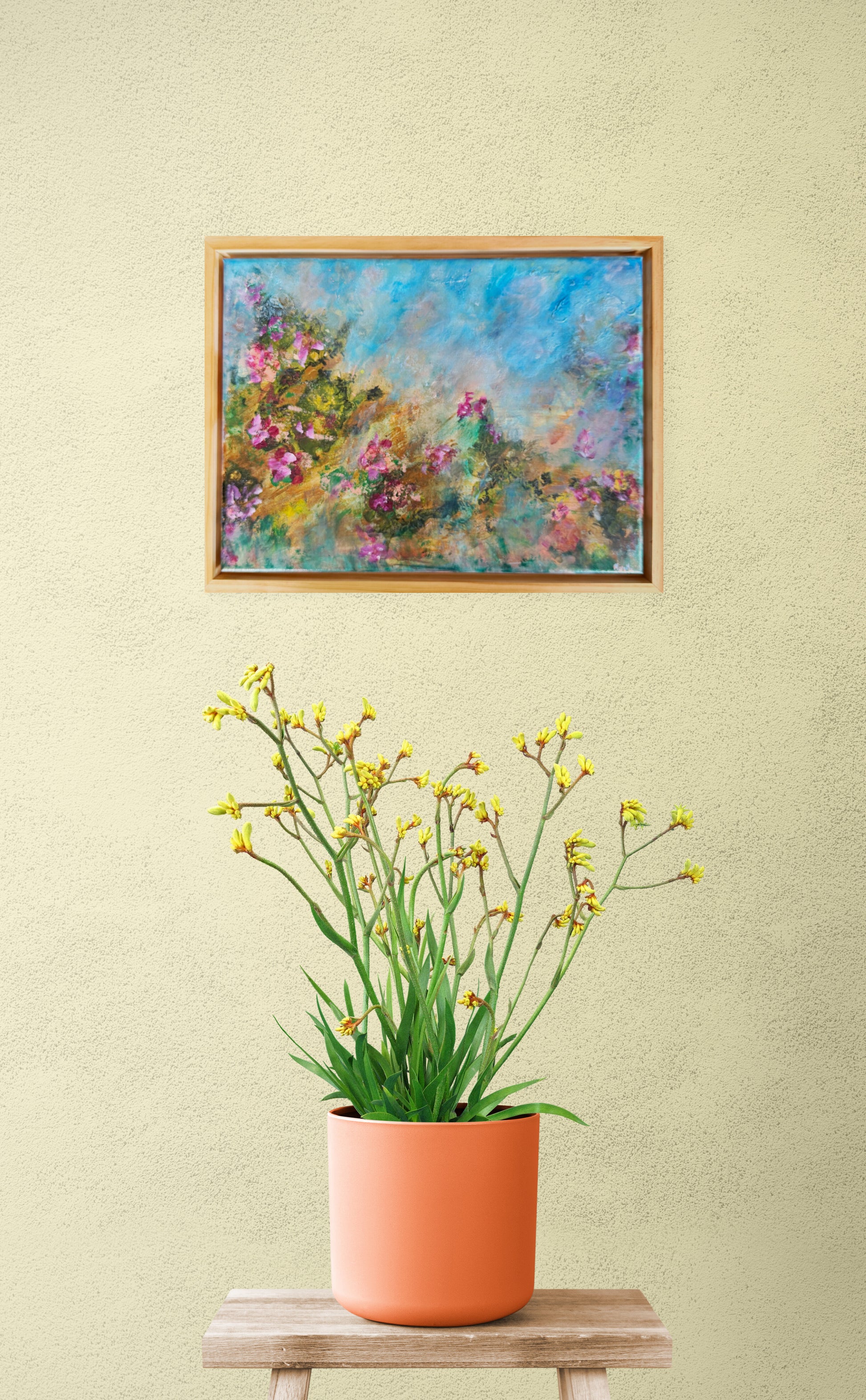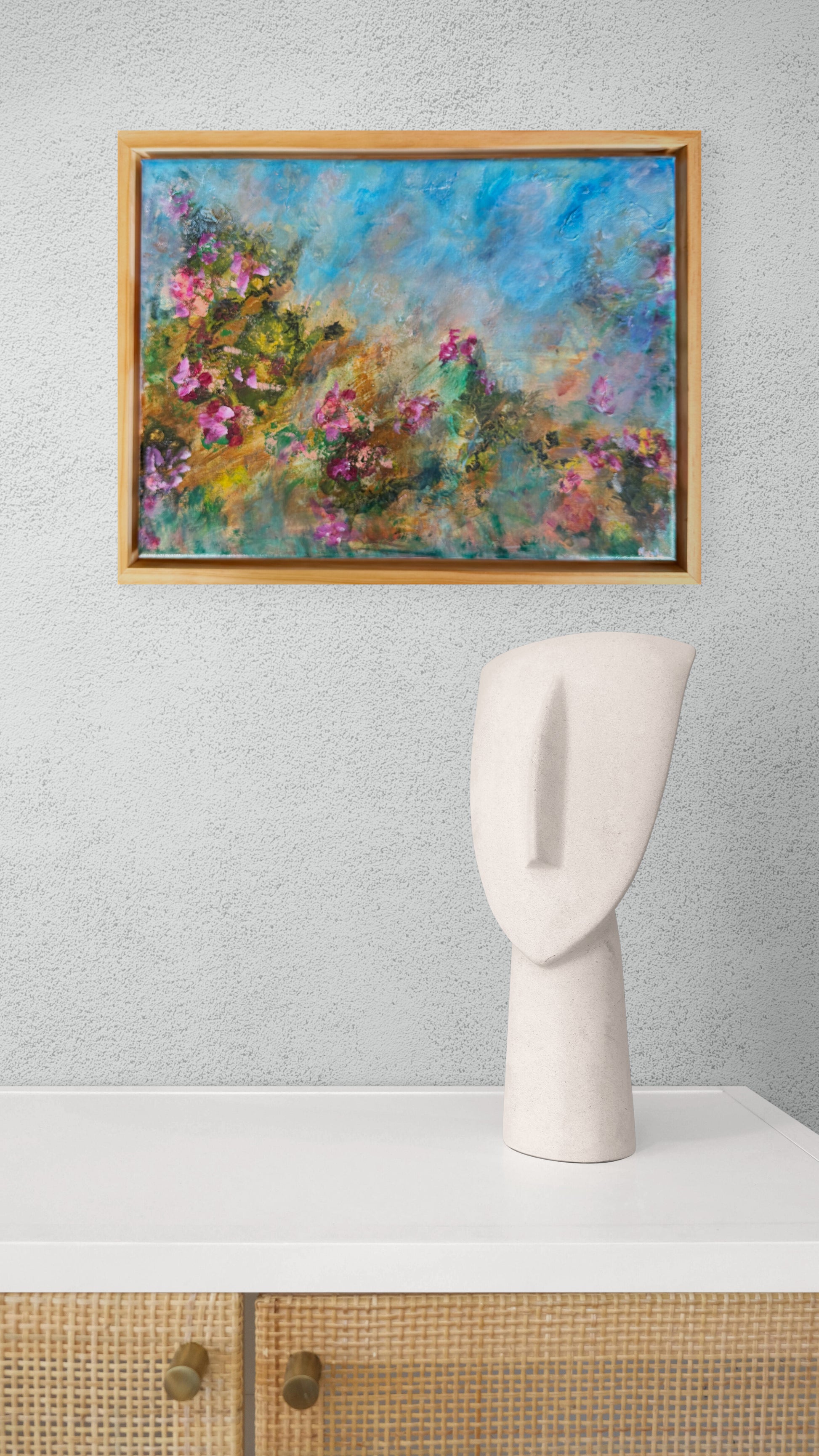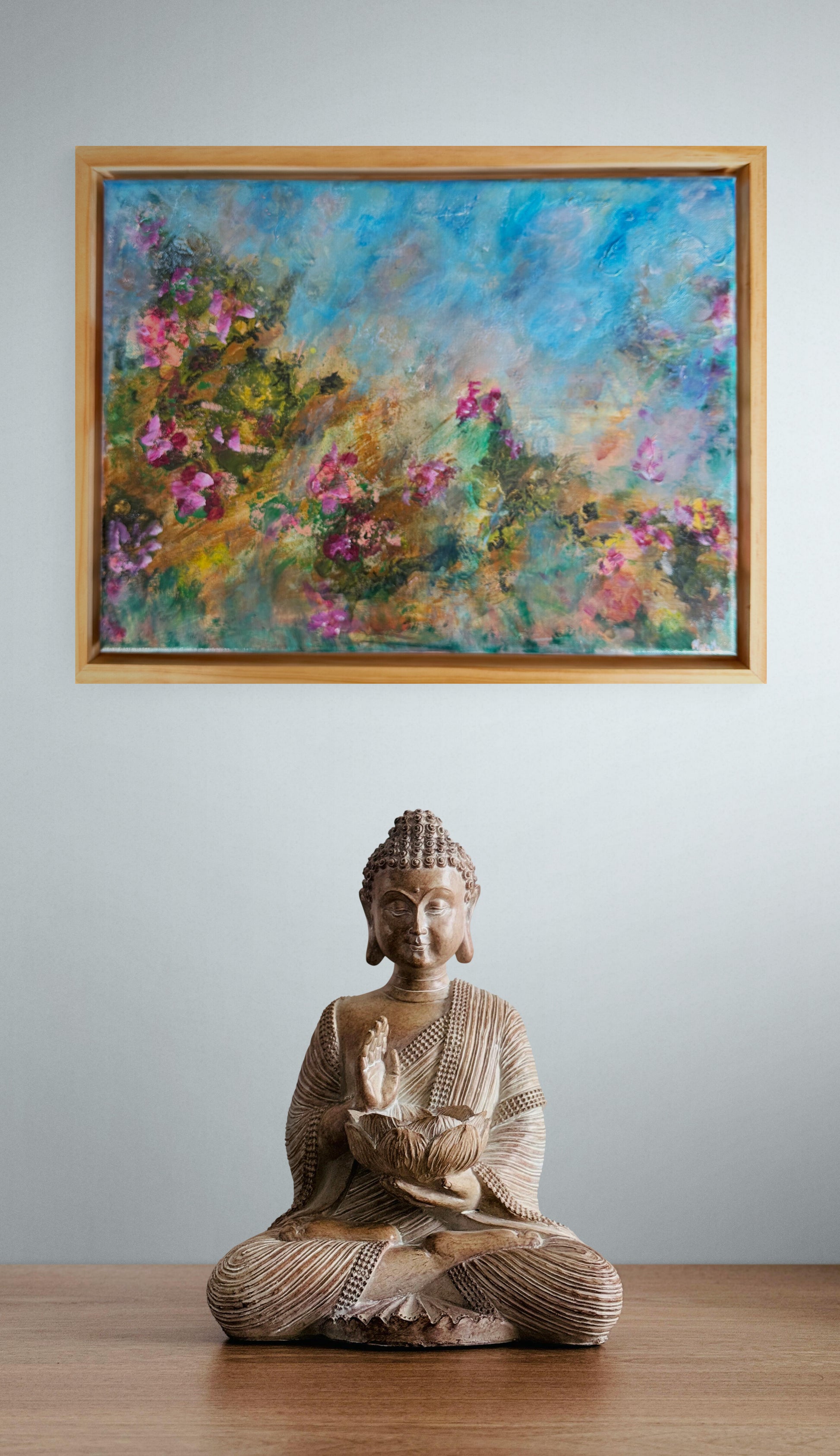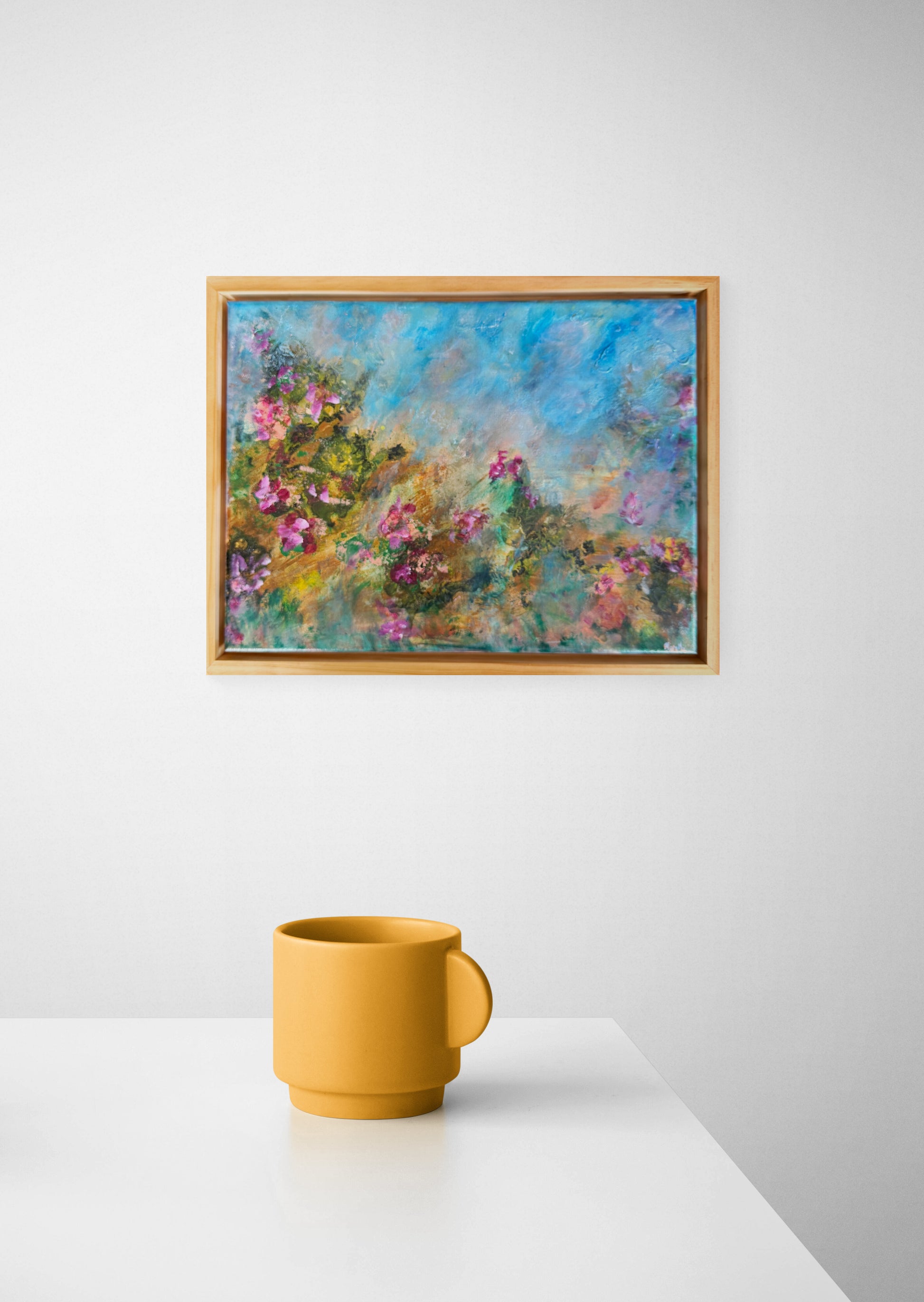 Where Flourishing Begins, is a piece I created to honour the moment when life starts to open again — when colour, movement and hope gently return after a quieter or more difficult season. Soft blue skies drift over layered blossoms and earthy tones, symbolising renewal, growth and the beauty of beginning again 🌸